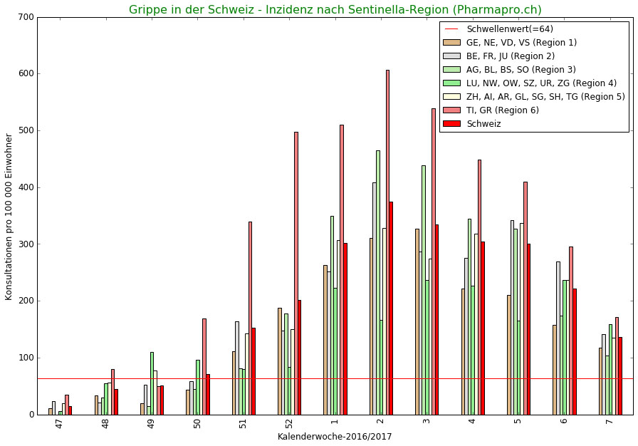 Kleinkinder bis vier Jahre sind weiterhin am stärksten von der Grippe betroffen. Der Trend ist aber in allen Altersklassen sinkend. In fast allen Regionen war die Grippe weit verbreitet, ausser im Graubünden und im Tessin, wo sie nur noch verbreitet auftrat. Fast überall ist der Trend sinkend.