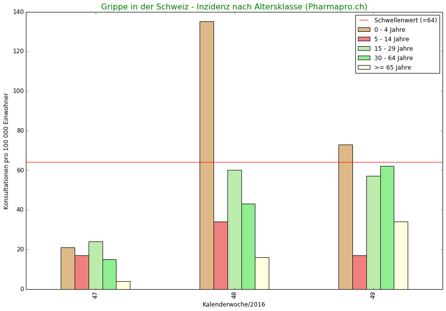In der Schweiz richtet sich der epidemiologische Grenzwert der Grippe nach 64 Influenzavirus-Verdachtsfällen pro 100'000 Einwohner und Saison 2016/2017.