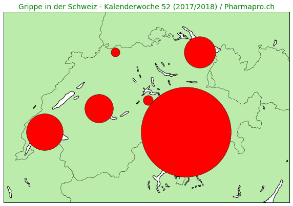 Diese Ergebnisse aus 217 Arztterminen pro 100'000 Einwohner innerhalb der 52en Kalenderwoche 2017 stammen von der Sentinella-Grippe-Überwachung.