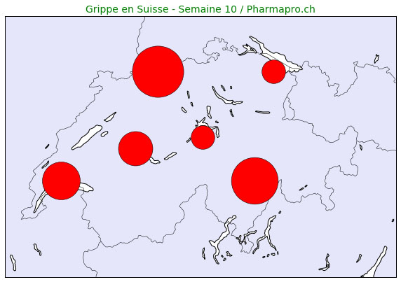 L'observatoire de la grippe Sentinelles distingue 6 régions géographiques en Suisse. Les régions 1 (GE/NE/VD/VS) et 2 (BE/FR/JU) concernent les cantons romands.